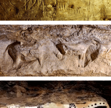 En art pariétal, l'attention des artistes paléolithiques se prête aux conformations rocheuses au cours de la construction de l'édifice graphique. En général, pour ces artistes la paroi est en constant «dialogue» avec la figure réalisée. Il y a comme une «communication» qui se fait entre l'artiste, la paroi , la flamme et la figure, et ce à travers le jeu des contours, des accidents de texture, des fissures sur les surfaces, et de l'utilisation du volume rocheux. Tout se passe «...comme si l'intervention humaine répondait en la soulignant à l'offre pariétale, comme si l'artiste reconnaissait dans ces fissures et ces vermiculations une intention de la grotte, une amorce imprécise de représentations». Pour cette raison, «on a parfois l'impression que la figuration s'est imposée à l’artiste».Cette dialectique de l'image avec le support s'instaure à tous les niveaux : au niveau de l'encadrement, de l'intégration icono-plastique, sur le plan narratif et même sur celui de l'association avec certains éléments.